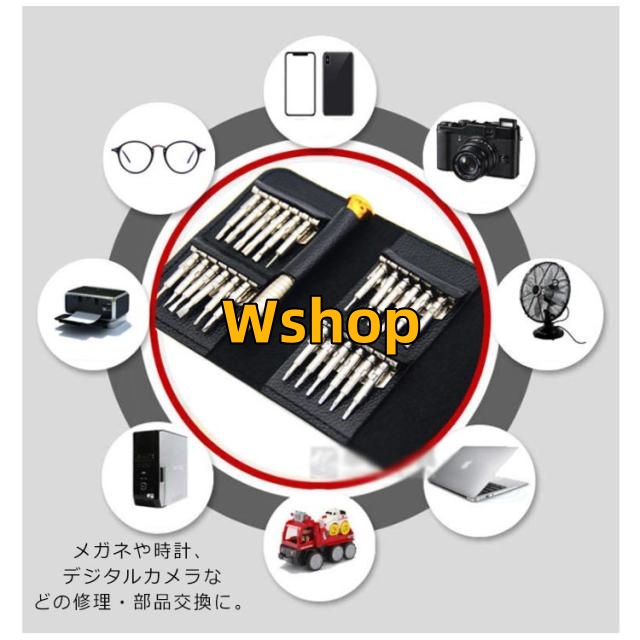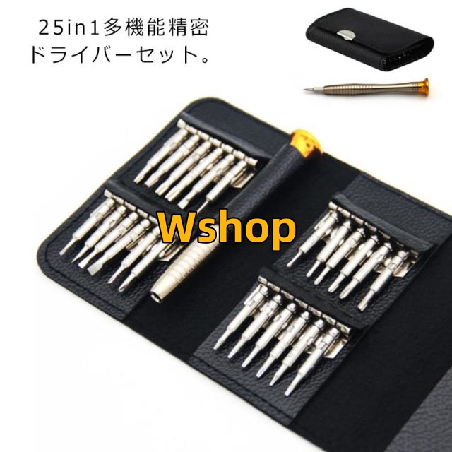 | 25in1多機能精密ドライバーセット。 精密機器の分解や修理、DIYなど、細かな作業の必需品。 メガネや時計、デジタルカメラなどの修理・部品交換に。 ゲーム機、スマホ、携帯電話などの小型端末の特殊なネジにも対応、自作PCでも活躍。 ビットを1つずつホルダーに固定できるので、散乱したり紛失したりする心配がありません。 キーケースほどのコンパクトサイズなので持ち運びに便利で、ポケットに忍ばせておくこともできます。 ソケットの先端を回転させて緩ませ、ビットを取り付け、締めるだけ。 ビットの装着がかんたんで、ビットも揃っているので、すぐに作業に取り掛かることができます。 | |