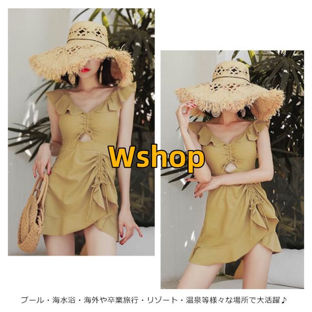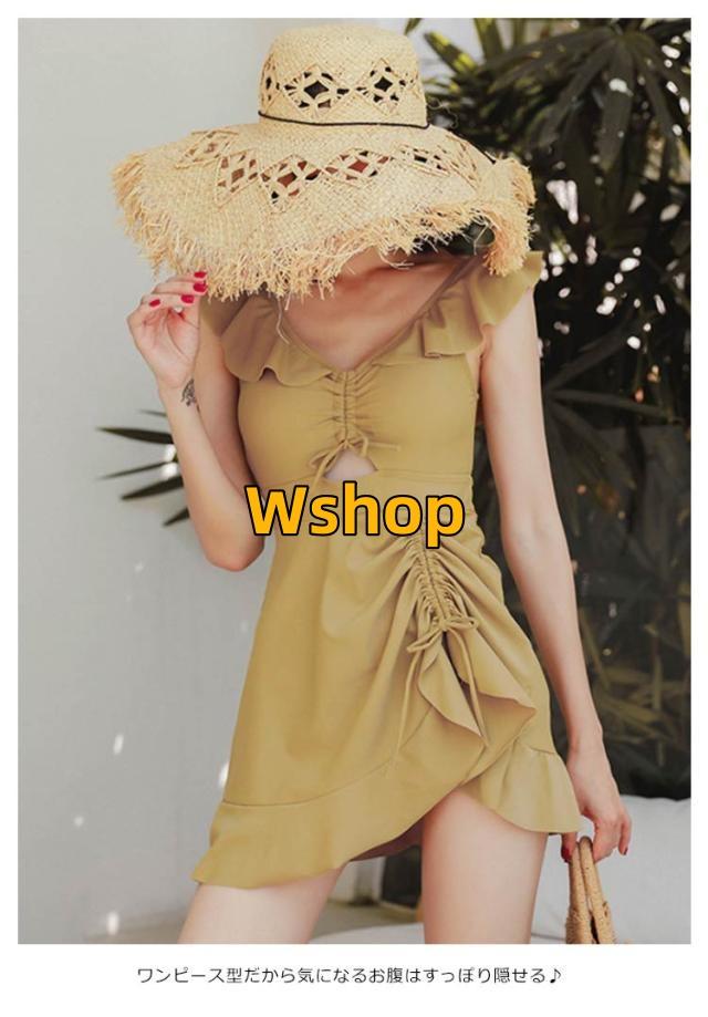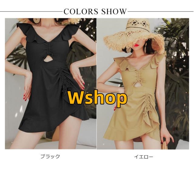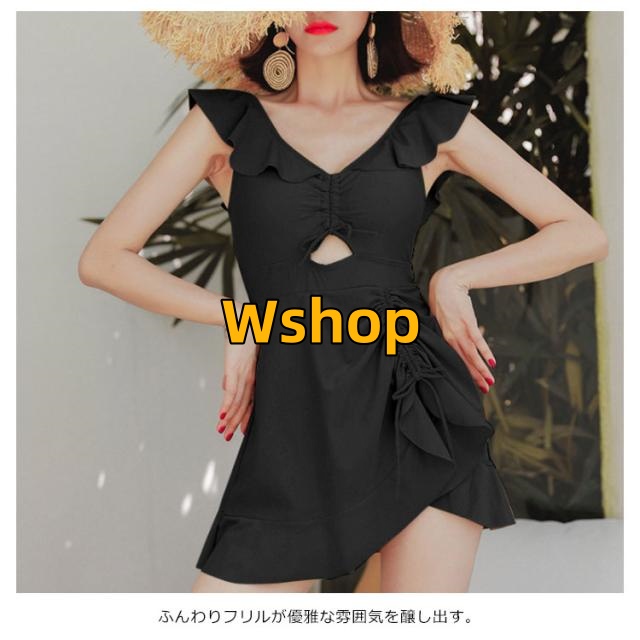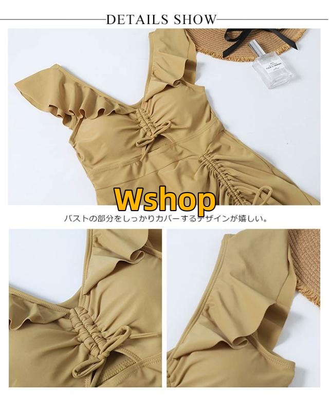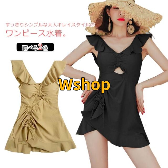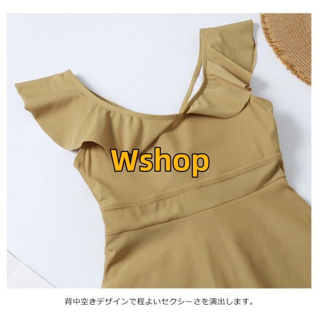ワンピース水着 レディース 上品 フリル みずぎ 夏 海辺 お洒落 プール スイムウェア ストレッチ 背中空き 可愛い ワイヤー入り 送料無料水着 パッド付き 一体型 着痩せ キレイめ シャーリング 体型カバー フレアワンピース 無地 オールインワン ビーチ