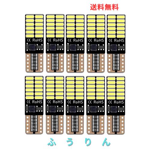T10 W5W CANBUSキャンセラー内蔵LED DC12V 4014SMD 24連 無極性ポジション ナンバー灯 ホワイト 両面発光 10個セット