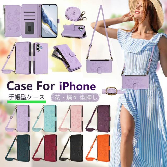 iPhone 16e ケース 手帳 iPhone 16eケース iPhone16eケース 手帳型 iphone 16e カバー ショルダーケース アイフォン 16e スマホケース 耐衝撃 スタンド機能 カード収納 可愛い オシャレ iphone 16e 手帳型ケース 蝶々 花柄 型押し バタフライ ショルダー