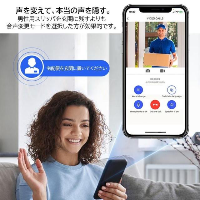 変声機能:訪問者との会話をより安全にするための変声機能を搭載しています。自分の声を変えて、訪問者に対して異なる印象を与えられます。