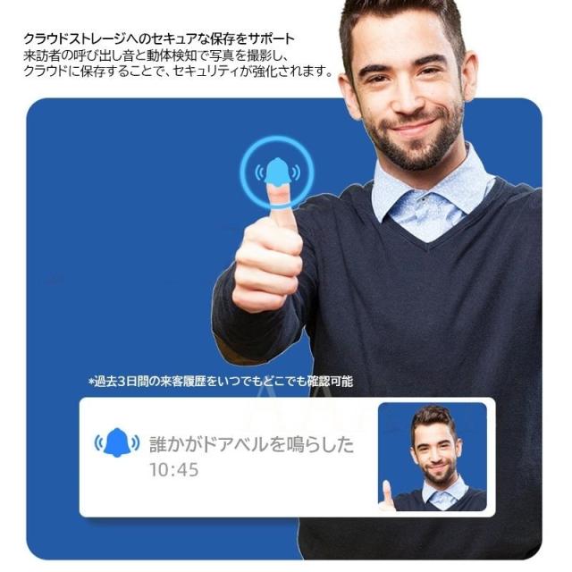 スマートホーム対応:スマートフォンやタブレットと連携することで、外出先からでも訪問者とコミュニケーションを取ることができます。アプリを通じて、リアルタイム映像や録画を確認できます。