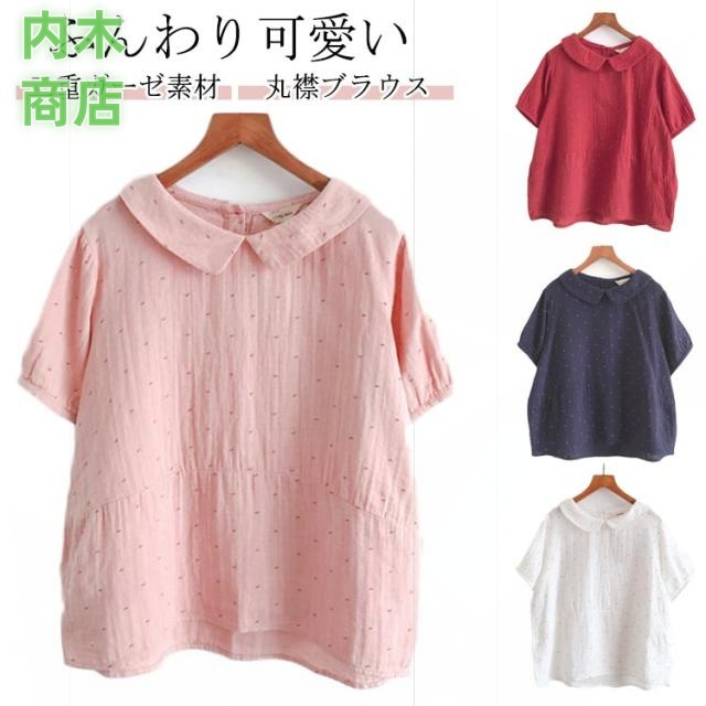 コットン 丸襟 半袖 シャツブラウス 夏服 カジュアル ナチュラル 丸襟 通気 レディース 柔らか 森ガール 半袖ブラウス 綿