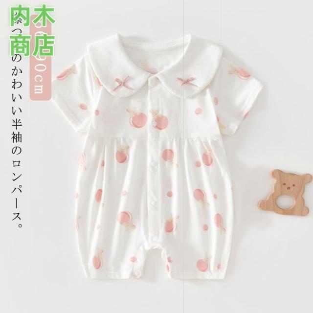 春夏 半袖 いちご柄 女の子 子供服 肌着 ベビー ベビー服 綿 赤ちゃん服 66 かわいい 新生児 えり付き おしゃれ 前開き パジャマ くま柄 コットン ルームウェア 薄手 新生児服 かわいい ロンパース ベビー 73 80 カバーオール 90