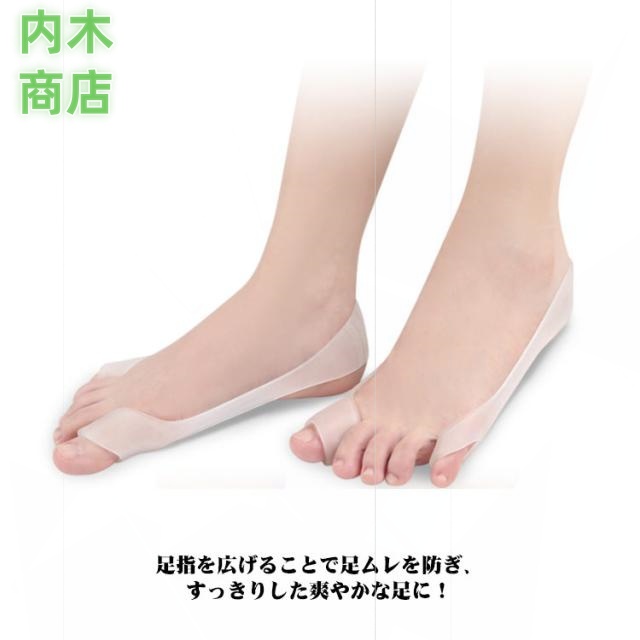 | 【外反母趾 内反小趾 サポーター】【2個セット】 パカッと広げて足指を解き放つ! 外反母趾の方もスッキリ! 足の親指と小指の間を広げることで、正しい位置へと補正。 足指を広げることで足ムレを防ぎ、すっきりした爽やかな足に! 汚れたら水洗いできるので、繰り返し清潔にお使いいただけます。 半透明のタイプで、足につけても目立ちにくいため、靴下や靴などを履いている時はもちろん、立ち仕事、立ち家事、運動時、自宅、外出など様々なシーンで使えます。 | |