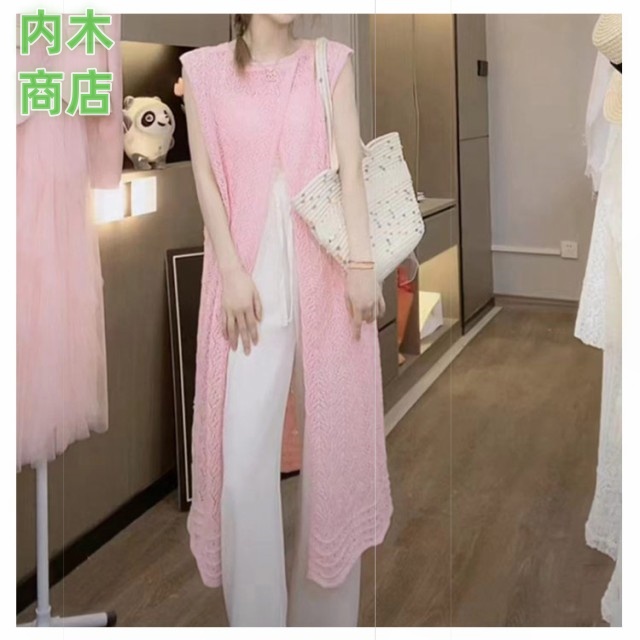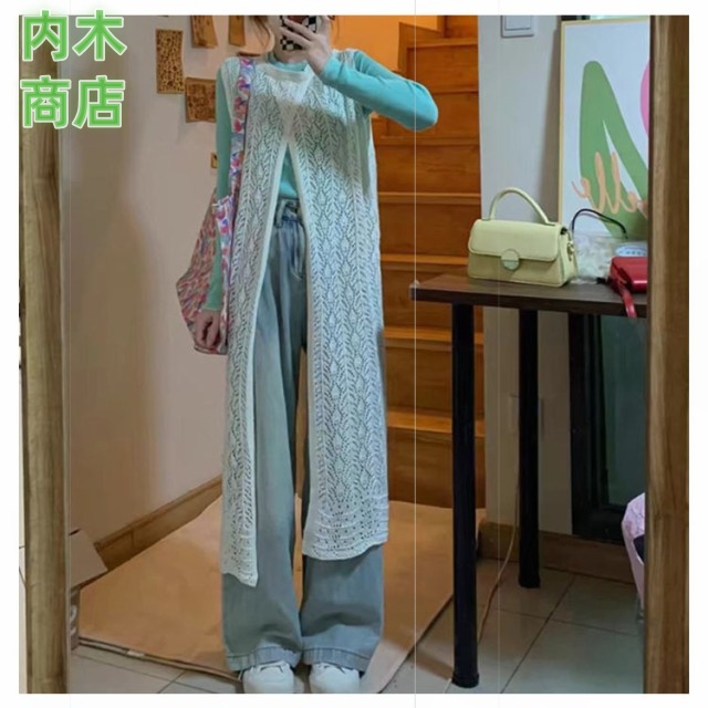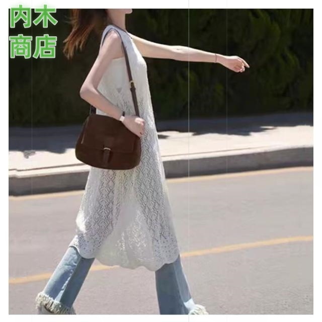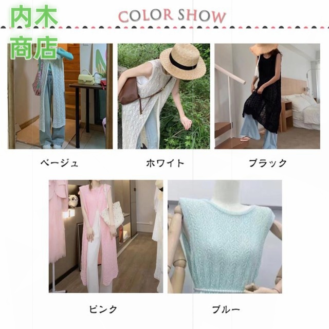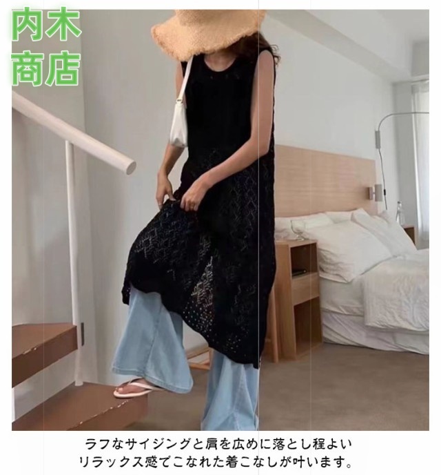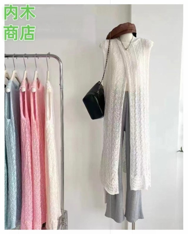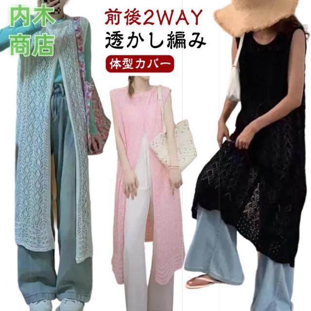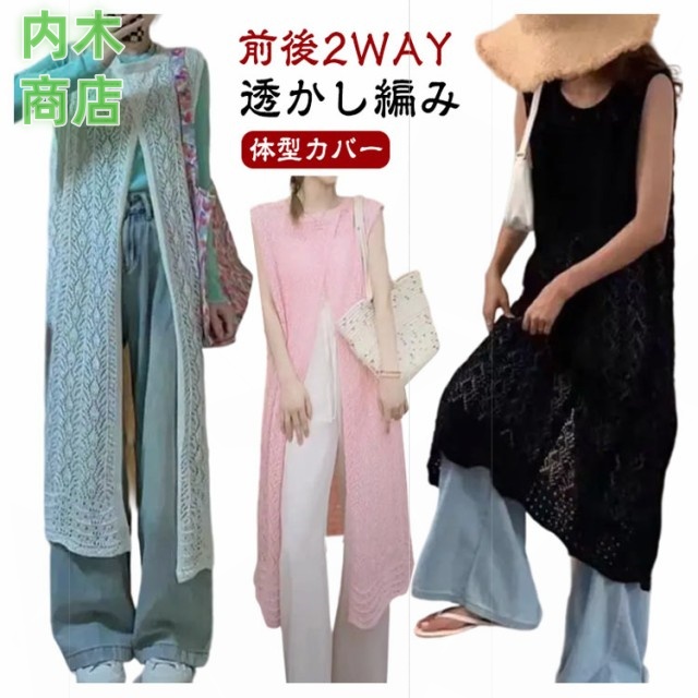 レディース ロングカーディガン コーデ スリット きれいめ ロングベスト 透かし編み 大人カジュアル ニット ロング ワンピース カーディガン ジレ ベスト 羽織り サマーカーディガン かぎ編みニット 前後2 体型カバー