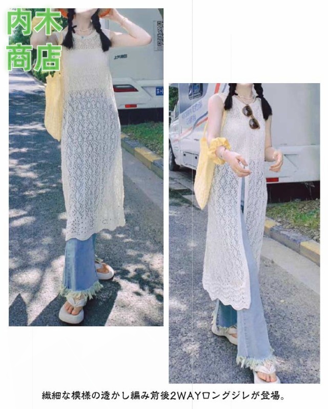 即納OK ランキング常連 体型カバー レディース ジレ きれいめ ロングカーディガン スリット かぎ編みニット ベスト サマーカーディガン 前後2 ワンピース 透かし編み ニット 大人カジュアル ロングベスト コーデ ロング カーディガン 羽織り 送料無料