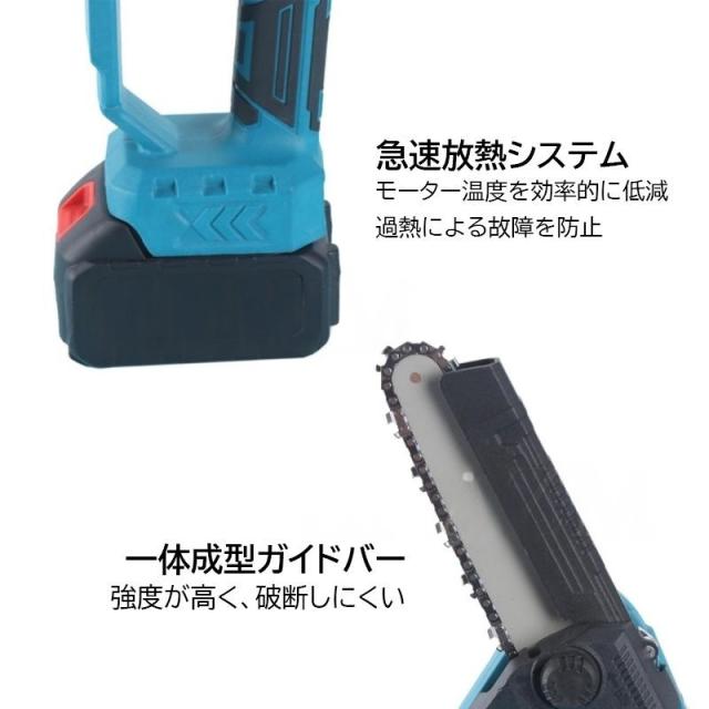 チェーンソー 充電式 安全ロック 4/6インチ ハンディチェーンソー 充電式チェーンソー 充電式ハンディソー コードレス 電動チェーンソー 小型チェーンソー