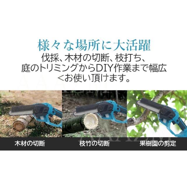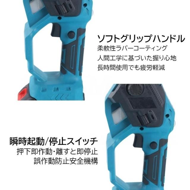 大容量バッテリー搭載:長時間の使用を可能にする強力な充電式設計で、伐木や剪定作業をスムーズに行えます。