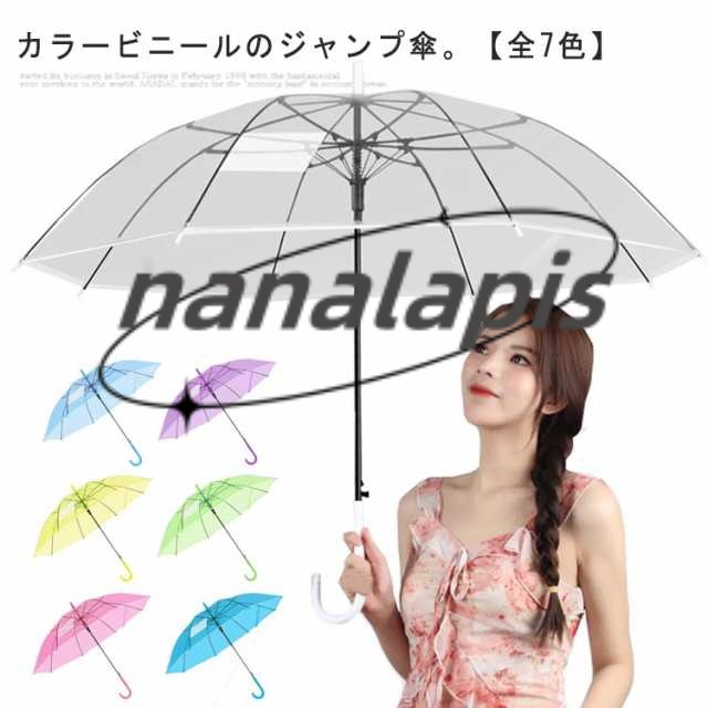 ビニール傘 長傘 雨傘 ジャンプ傘 透明傘 カラービニール おしゃれ レディース メンズ 傘 かさ 透明 ワンタッチ 自動開 軽量 撥水 耐風 頑丈 丈夫 通勤 通学 梅雨対策 雨の日 ロング傘 長傘 かわいい シンプル ブルー ピンク グリーン パープル