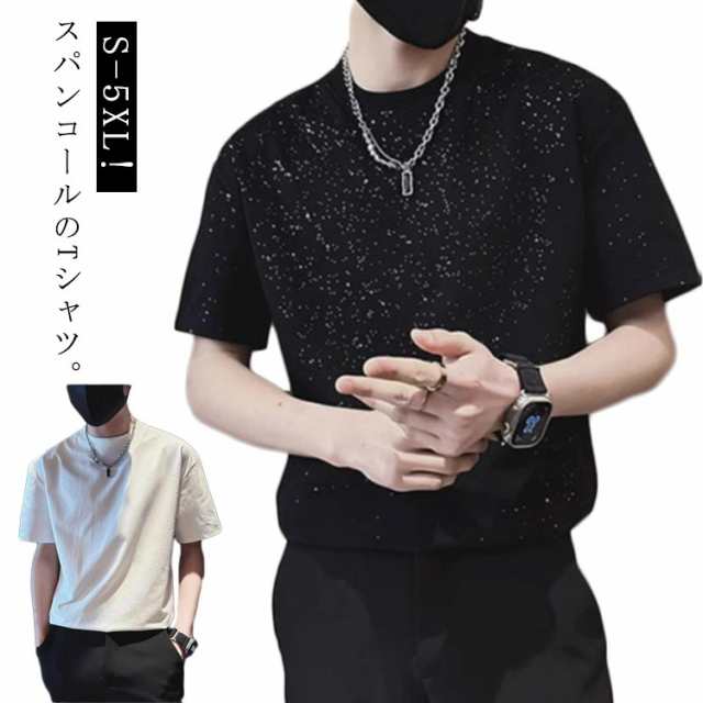 スパンコール Tシャツ メンズ 半袖 tシャツ キラキラ トップス 春 夏 夏服 綿 コットン 丸首 ティーシャツ 韓国ファッション 男性 女性 男女兼用 ゆったり 大きいサイズ ダンス衣装 ストリート おしゃれ カジュアル 通学 黒 白 ブラック ホワイト S-5XL