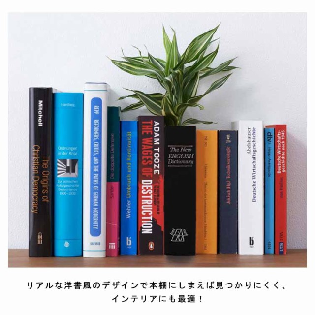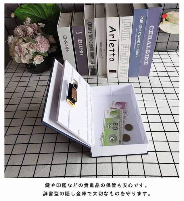 | 本物そっくりの英語辞典型金庫。本棚に溶け込む、ホンモノの辞書そっくりのデザイン! 鍵や印鑑などの貴重品の保管も安心です。 リアルな洋書風のデザインで本棚にしまえば見つかりにくく、インテリアにも最適! 辞書型の隠し金庫で大切なものを守ります。 (鍵タイプ)付属の鍵で開閉できるから安心です! お洒落に飾れてこっそり収納♪大切なものを安心して保管できます。プレゼントにも最適です。 パスワードを変更する方法:1:初期パスワード。初期パスワードは000です。 2:A?B調整。ボックスのパスワードロックをAからBにダイヤルします。 ステップ3:パスワードを変更します。パスワードを自分の希望する数字に変更します。例えば「888」 ステップ4:B?A調整。パスワード調整キーをBからAに戻し、パスワード設定が完了! | |