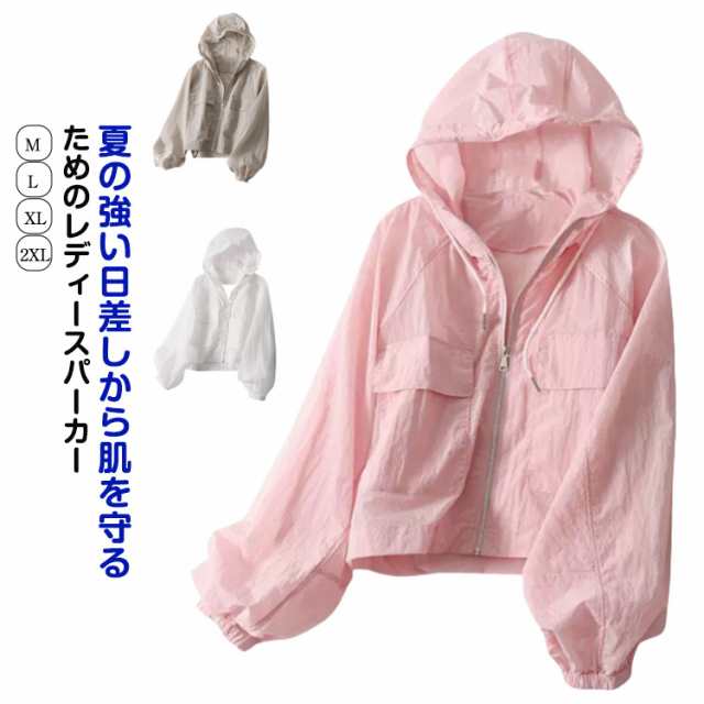 パフスリーブ パーカー 無地 ショート丈 軽量 UVカット カーディガン 冷房対策 パーカー 防風 撥水 薄手 冷感生地 日焼け防止 紫外線対策 フード付き アウター ゆったり ジップアップ シアー シースルー かわいい カジュアル おしゃれ 春 夏
