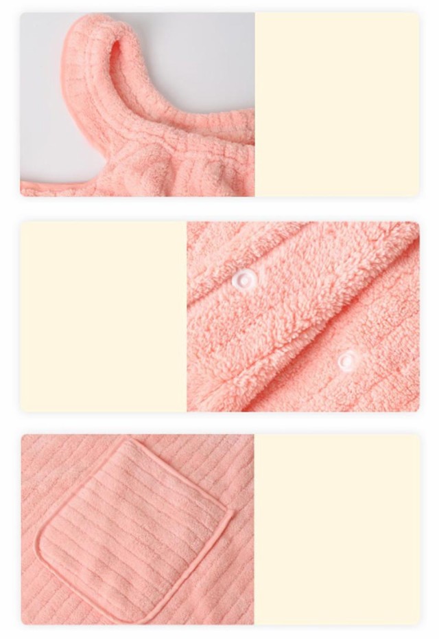 | 普段使いはもちろん、 レジャーシーンやジムなど幅広いシーンで活躍してくれる便利アイテム◎ ワンピースの様に着れる、バスタオル。 腕を通して、くるっと巻いてボタンを 2か所止めるだけでバスタオルが着れちゃいます。 髪を乾かす時・夏のお風呂上がり・夏のレジャー 等々、 普通のバスタオルでは少し不便な場面でのストレスを解消! | |