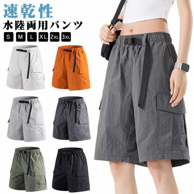 通気 レディース ロング ハーフパンツ ハーフパンツ サーフパンツ M ひざ下 水陸両用 ウエストゴム ミリタリーパンツ 夏 水着 短パン 薄手 速乾 ハーフパンツ ボードショーツ スポーツ ナイロン ベルト ハーフ 黒 S 体型カバー L XL 2XL 3XL