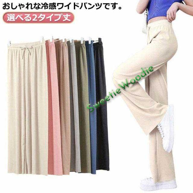 ボトムス 接触冷感 イージーパンツ レディース ひんやり 9分丈 ロング丈 ワイドパンツ 夏 ストレッチ リラックス ガウチョパンツ きれいめ ストレ