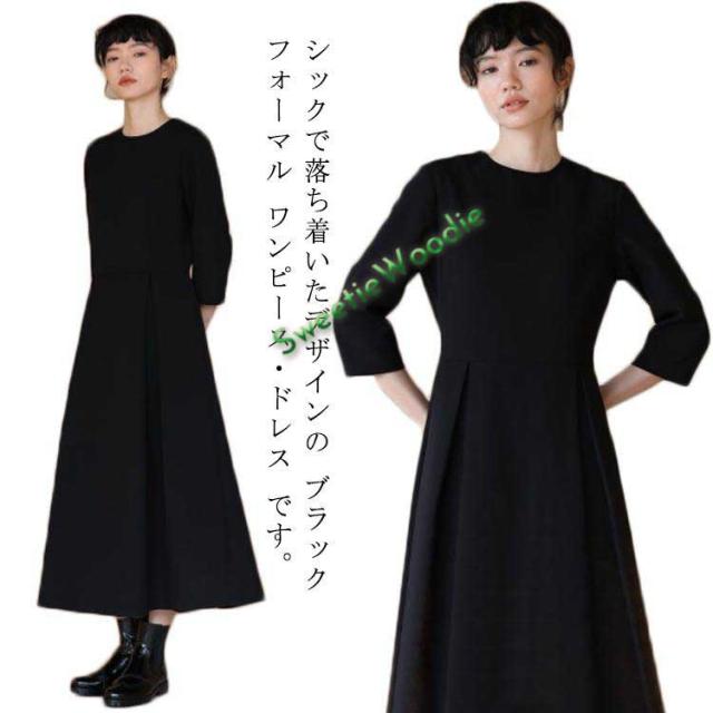 ワンピース レディース 大人 ロング 黒 フォーマル ロング丈 ミモレ丈 上品 きれいめ フレア 卒業式 入学式 喪服 オフィス 通勤 OL ママ 七