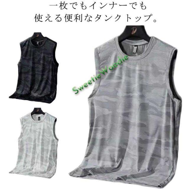 2枚セット タンクトップ メンズ ノースリーブ トップス ドライ メッシュ 接触冷感 ストレッチ 吸汗 速乾 インナー 男性 メッシュtシャツ 迷彩柄
