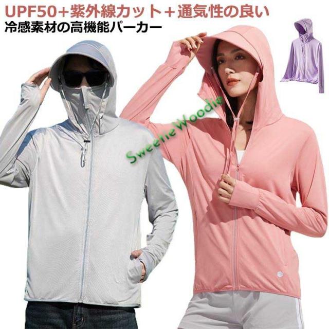 メンズ パーカー 接触冷感 顎紐 レディース ラッシュガード 長袖 薄手 UPF50 アウター UV 指穴 つば サンバイザー あご紐 UVカット