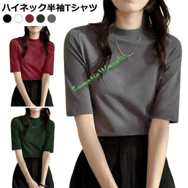 | ハイネック半袖tシャツ! 首がしっかり隠れるモックネックは夏の日よけ対策に。 二の腕カバーできる長め半袖tシャツ。 | |