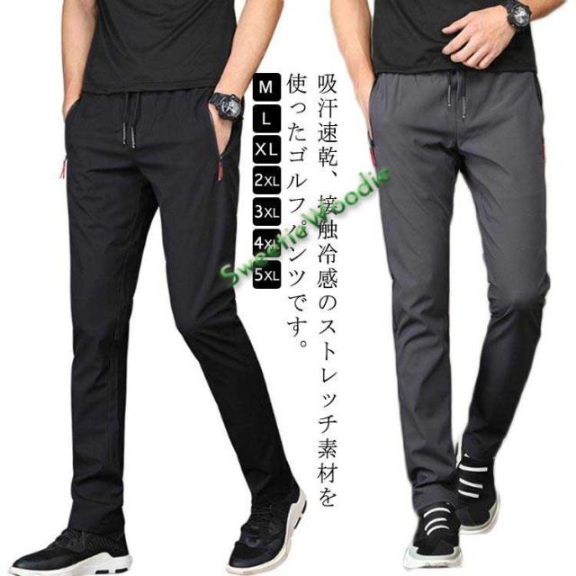 送料無料 接触冷感 ゴルフパンツ メンズ ゴルフウェア 涼しい ひんやり スラックス ストレッチ 伸縮 イージーパンツ ロングパンツ ウエストゴム ス