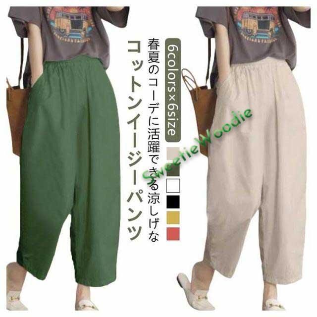 綿 パンツ リラックス イージーパンツ パンツ コットン ゆったり ボトムス レディース ウエストゴム サルエルパンツ 大きいサイズ 無地 夏服 春夏