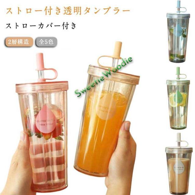 コップ ボトル ストロー付きタンブラー ストローカバー付き タンブラー 大容量 タンブラー ウォーターボトル 2層構造 蓋付き 女の子 おしゃれ コー