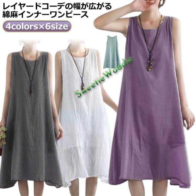 ペチワンピ ペチコート リネン ロングワンピース コットンリネン ロングワンピ 体型カバー 麻 ロング丈 ノースリーブ 夏ワンピース 綿 ワンピース