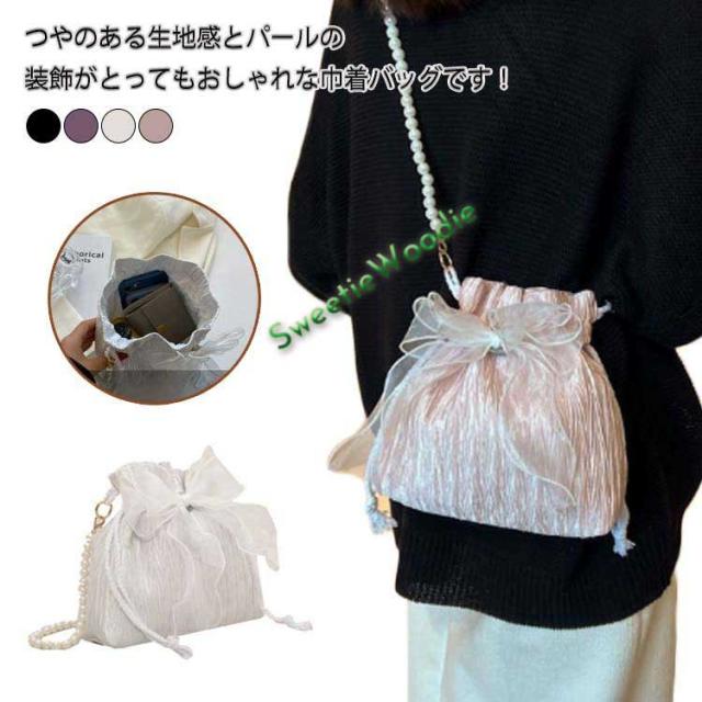 レディース 浴衣バッグ 軽量 ショルダーバッグ 可愛い 大人 パール ミニ リボン 巾着バッグ コンパクト 浴衣バッグ バッグ 小さめ かばん ミニバ