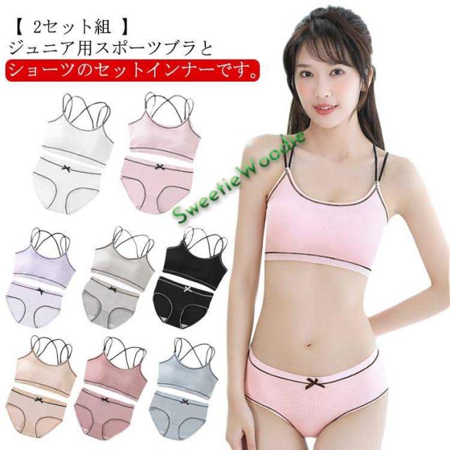 女の子 ファーストブラ ジュニア向け スポーツブラ ブラ ショーツ セット 上下セット カップ付き 子供用 インナー 肌着 綿 学生 中学生 高校生