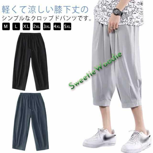 アイスシルク 夏服 7分丈 夏 大きいサイズ メンズ 涼感 パンツ クロップドパンツ ハーフパンツ ボトムス ルームウェア イージーパンツ ひざ下 ひ