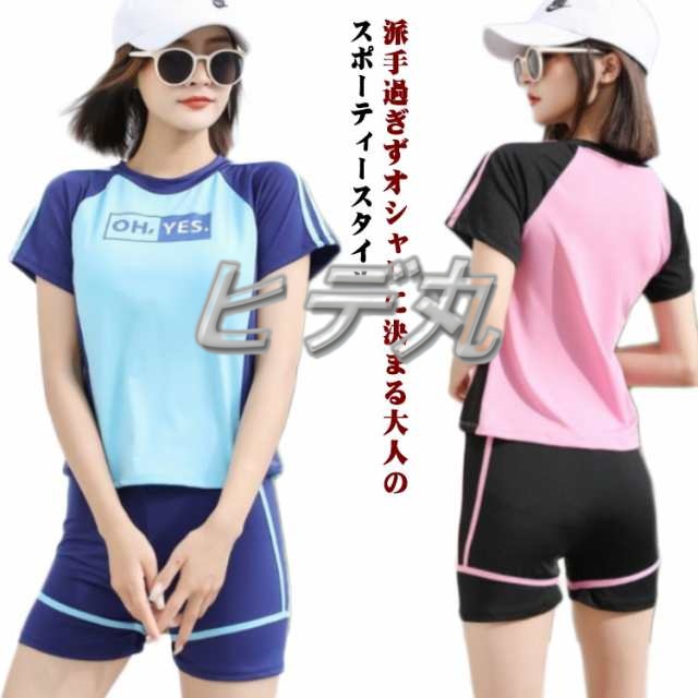 2点セット 夏 水着 ショートパンツ 体型カバー ママ水着潜水 中学生 大学生 可愛い 日焼け防止 ラッシュガード 高校生 UVカット 40代 10代 20代 30代 おしゃれ レディース かわいい 女性用 レイヤード風 水着 スクール水着 セパレート