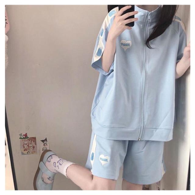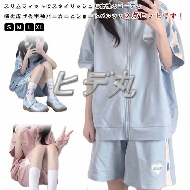 2点セット ジャージ レディース 春夏 半袖 スウェット パーカー 前開き ショートパンツ 上下セット パーカー スポーツウェア 地雷系 服 セットアップ ウエストゴム ゆったり 部屋着 トレーニング 運動着