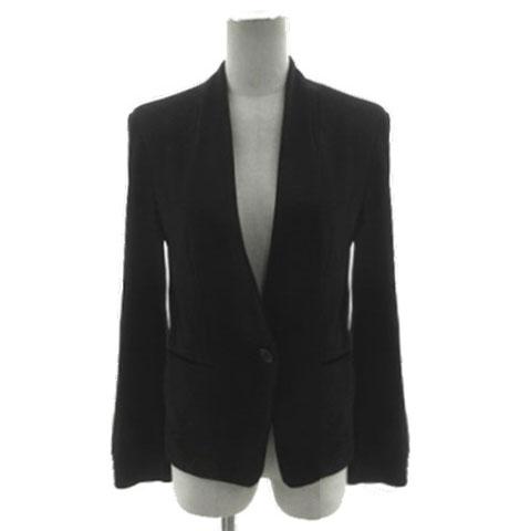 【中古】アイシービー iCB レーヨンブレンドノーカラージャケット ストレッチ シルク混 ブラック 黒 9 レディース