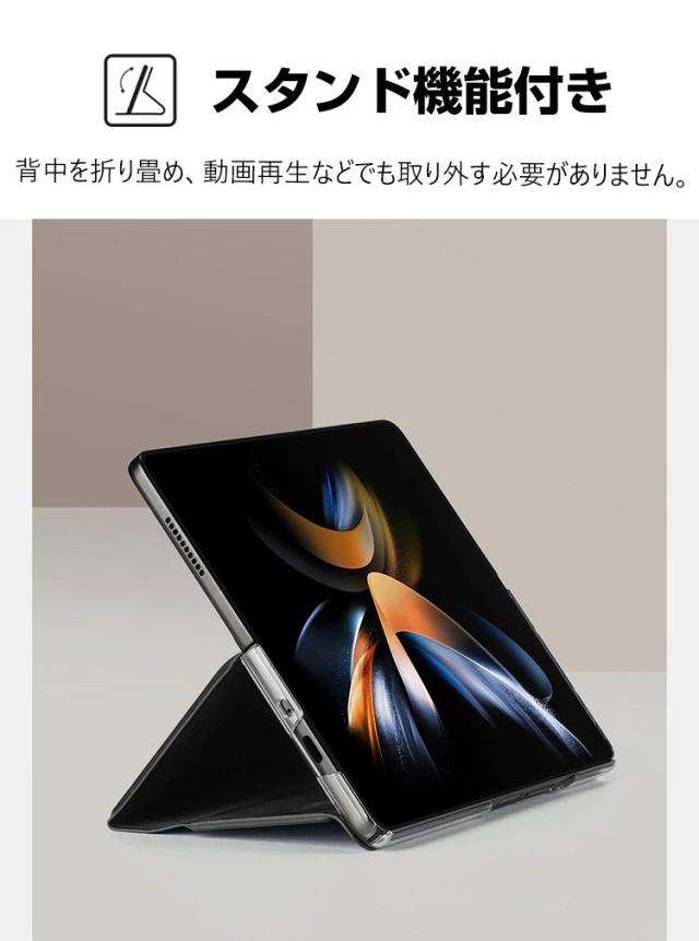 【スタンド機能】横置きスタンド機能で映画の視聴を楽しめます。ケースを装着したまま、電源ボタン、音量ボタン、コネクター等の機能が使えます。