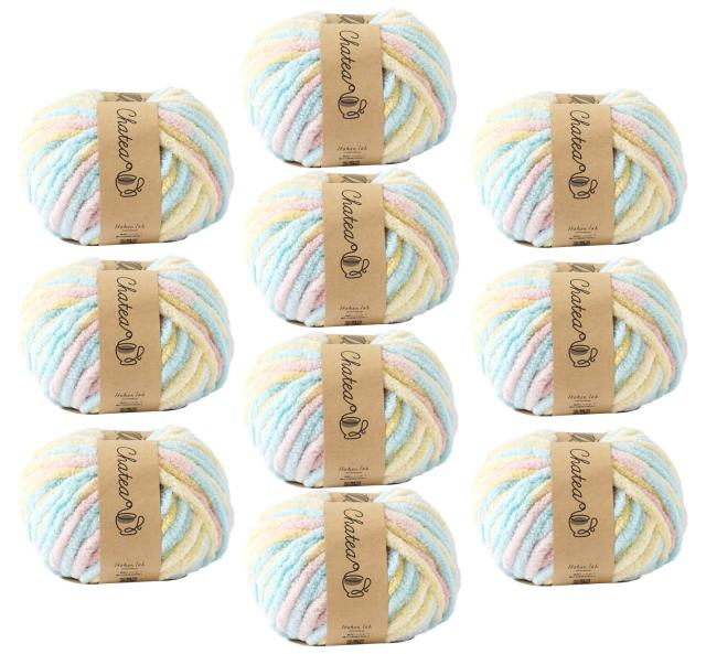 原ウール Knitworm 毛糸 10玉セット チャティカラフルモール 超極太 40g(約32m) ポリエステル100% 4.ノッシュ