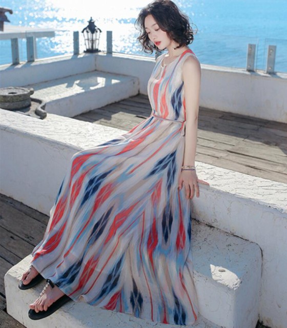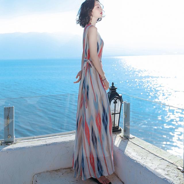 ボヘミアン風 ビーチ ワンピース マキシ丈ワンピース 夏 リゾート ワンピース 海 ハワイアン マキシワンピ レディース 夏新作