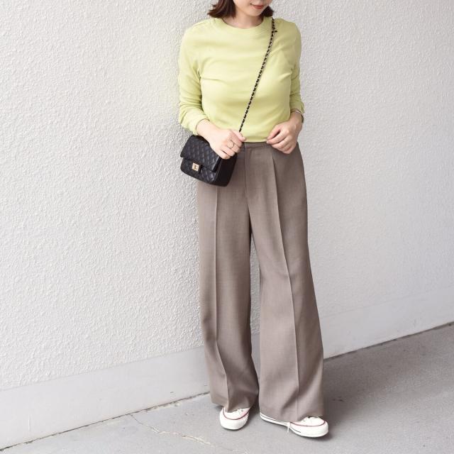 ワイドストレートシルエットとセンタープレスが、足を綺麗に見せてくれます。