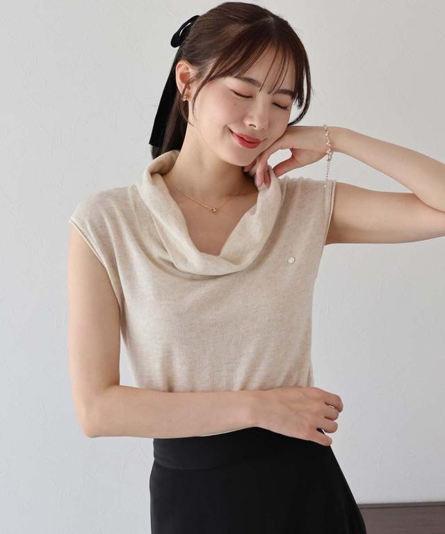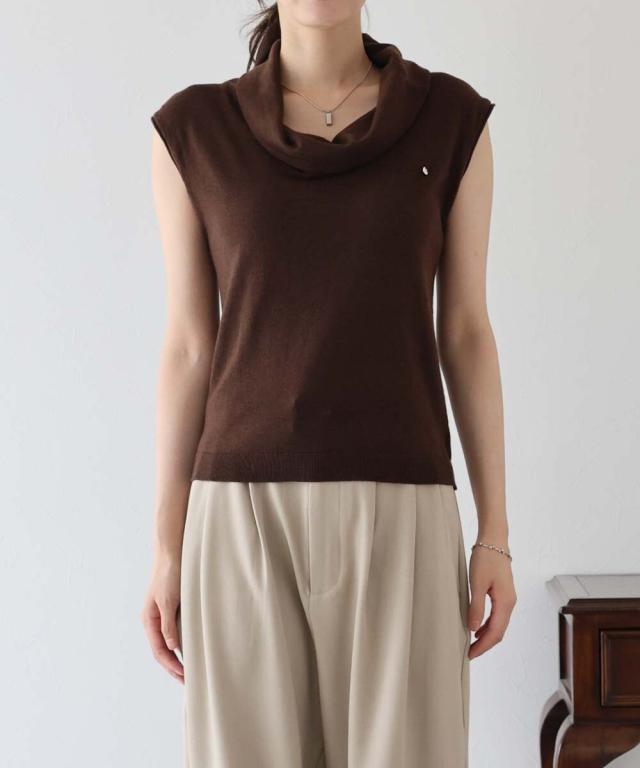 ゆるっとしたオフタートルネックがポイントのフレンチスリーブニット。