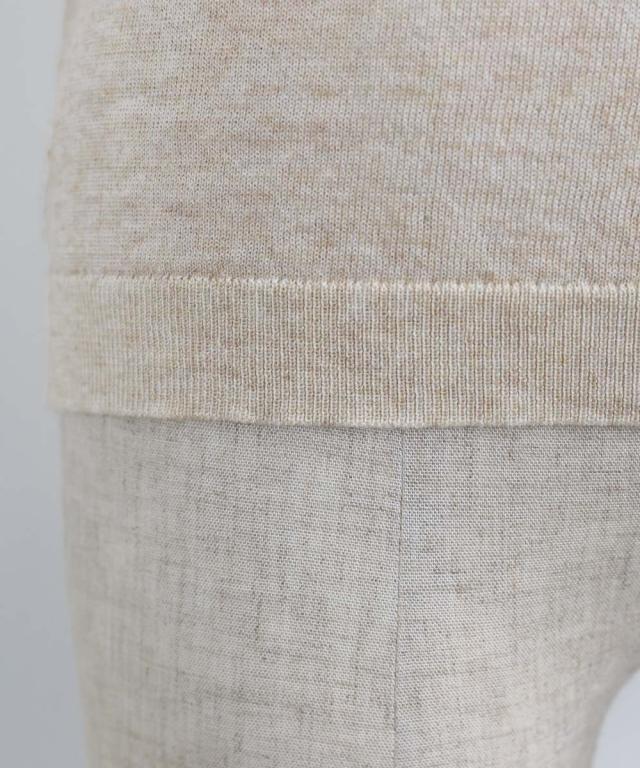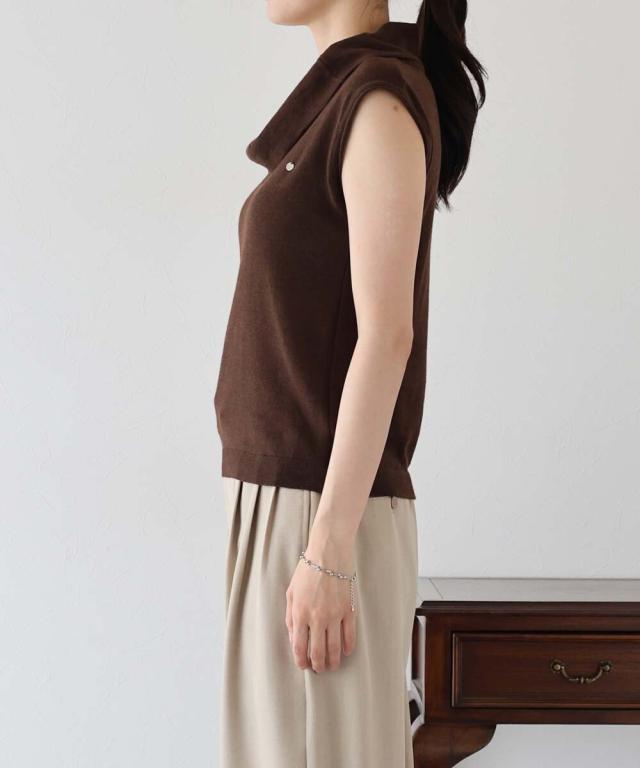 一足早くシーズンライクな雰囲気を演出できる夏の終わりにオススメのニットトップスです。