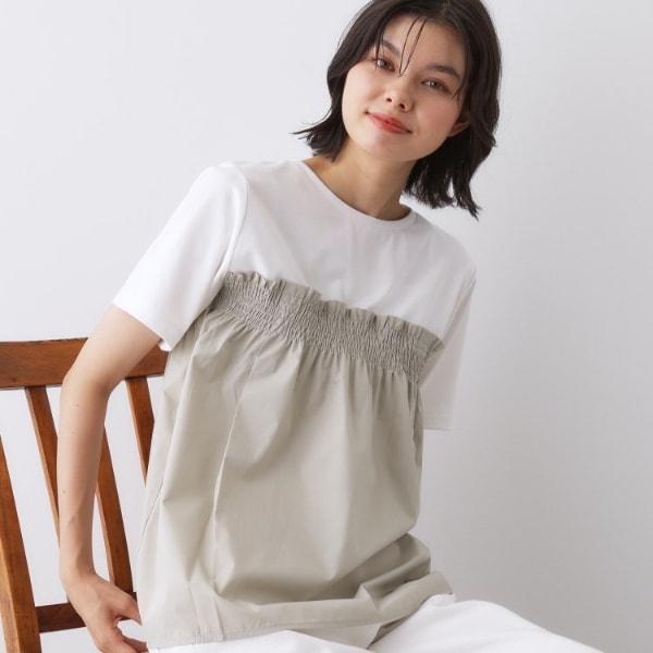 柔らかくストレッチ性のあるカットソー素材と落ち着きのある布帛素材。