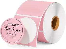 サーマルプリンター専用、ラベル-丸型 サーマルラベル、サイズ:50mm×50mm (ピンク)、紙管径:30mm、紙径:85mm