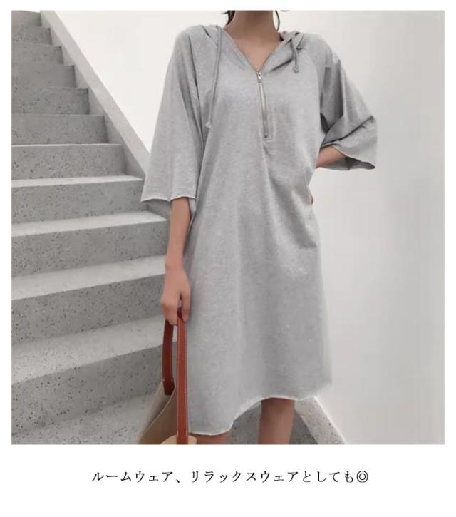 tシャツ レディース ワンピース 夏 5分袖 フード付 トップス 春夏 ロングTシャツ ワンピースTシャツ ビッグtシャツ オーバー 春 夏 カットソー シンプル 無地 五分袖 ビッグシルエット Tシャツ 大きいサイズ トレーニング スポーツ