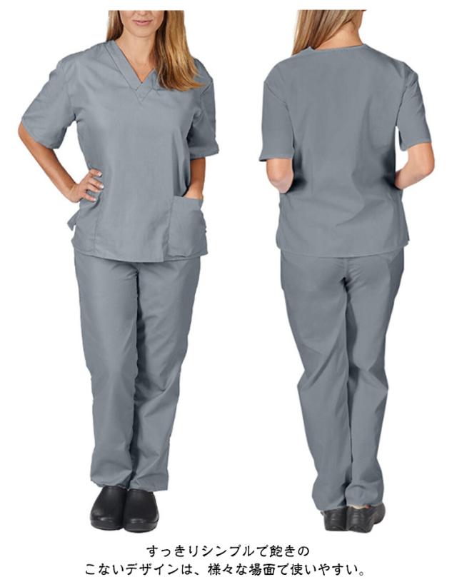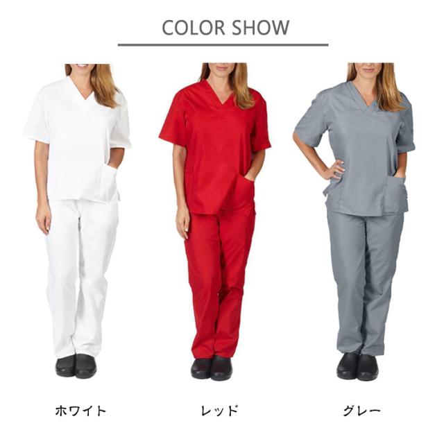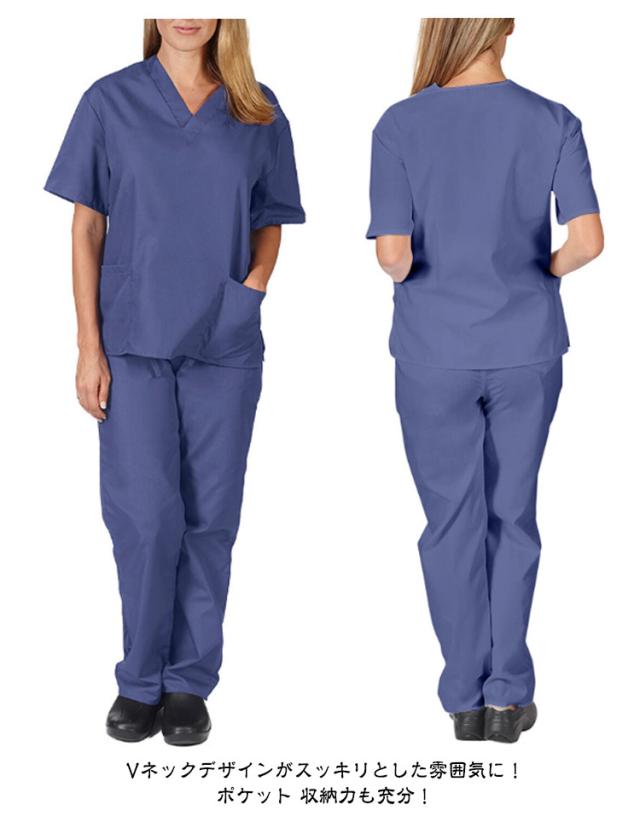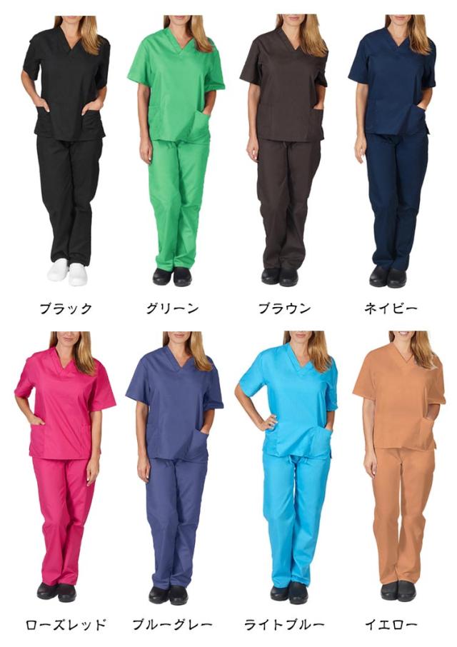 | S-2XL!スクラブ上下セット。すっきりシンプルで飽きのこないデザインは、様々な場面で使いやすい。 薄手ながらしっかりした生地で、着心地が良く、乾きやすいのが特長。吸汗・速乾性にすぐれた高機能繊維を採用。 Vネックデザインがスッキリとした雰囲気に! ポケット 収納力も充分! 洗濯を繰り返しても劣化しにくい、丈夫な工業洗濯対応素材。 医師、看護師、歯科助手、医学・介護学生、病院職員、薬剤師、その他医療分野の職業に最適です。 また、エステサロン、整体、美容室、動物病院、食品工場、がっつり家事など、作業着として様々なシーンでご着用できます。 | |