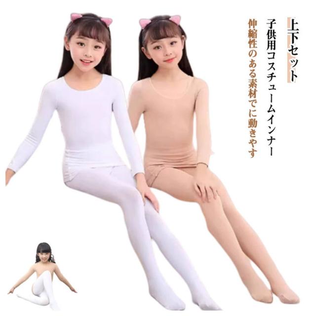 キッズ コスチューム インナー 肌色 白 黒 上下セット 演出服 ダンス衣装 薄手 2点セット バレエ トップス 長袖 タイツ レギンス 可愛い 子供服 体操 合唱団 衣装 無地 肌着 ガールズ ステージ衣装 子供用 下着 インナー 舞台 練習着 バレエ用品 肌色 黒 白