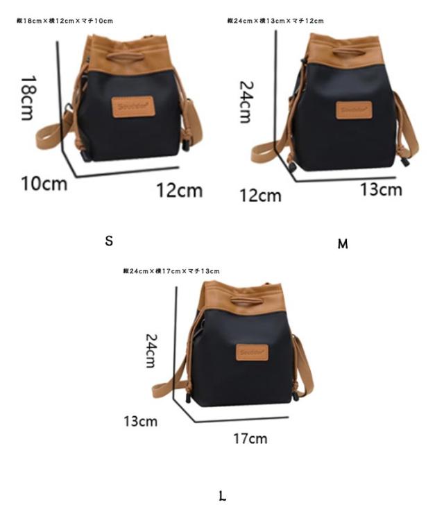 | サイズについての説明 | S:縦18cm×横12cm×マチ10cm M:縦24cm×横13cm×マチ12cm L:縦24cm×横17cm×マチ13cm |