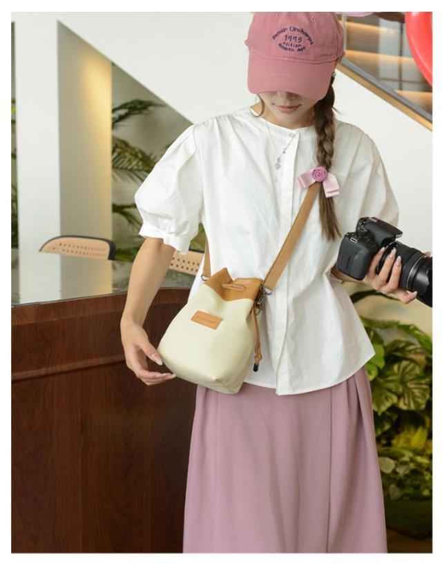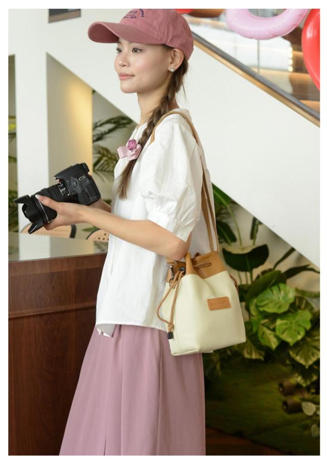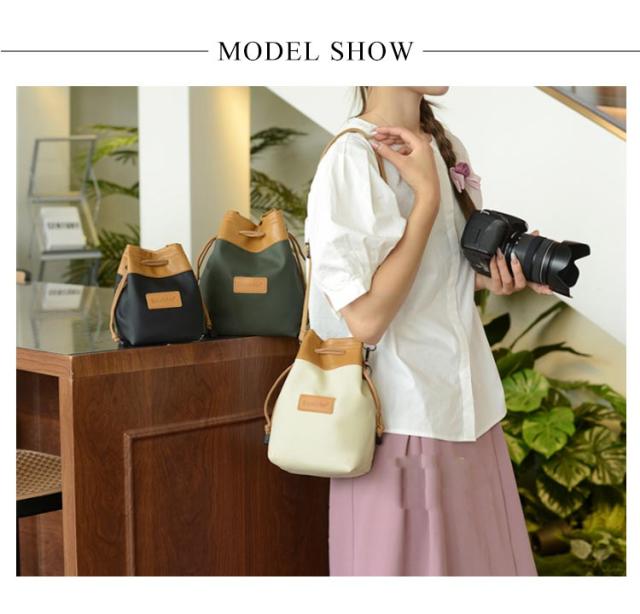 | 一眼レフカメラやミラーレス一眼、レンズの収納・持ち運びに便利なカメラポーチです。 ショルダーストラップは長さ調整が可能で、肩がけ・斜めがけどちらも対応。 内部ポケットにはSDカード、カードリーダー、アダプター、USBケーブルなどが収納可能。 内側は柔らかいクッション素材で、大切なカメラを衝撃から守ります。 防水加工を施した帆布とPU生地を使用して、突然の雨でも安心してお持ちいただけま 巾着の紐はドローコード付きですのでしっかり口を閉めて固定することができ、荷物の落下を防ぎます。 シンプルなデザインなので、洋服やシーンを選ばず、日常使いにもぴったりです。 | |