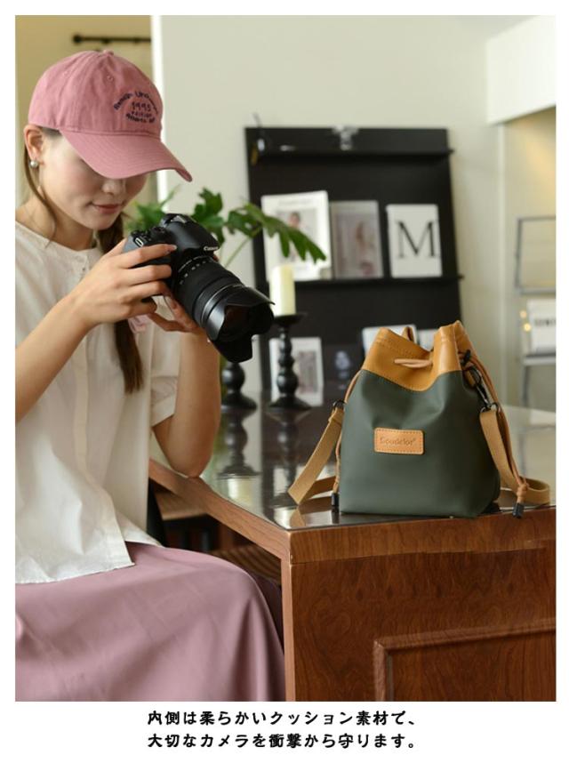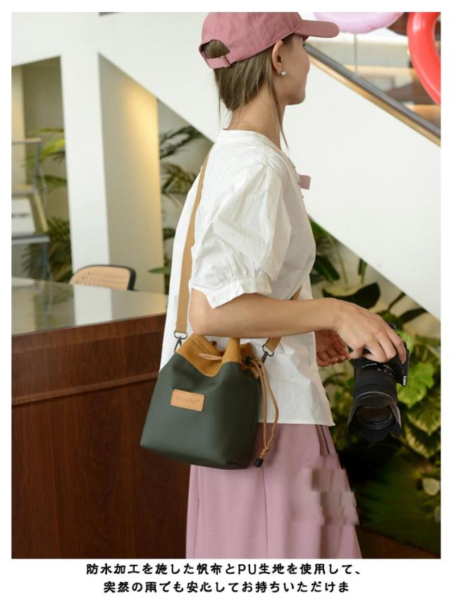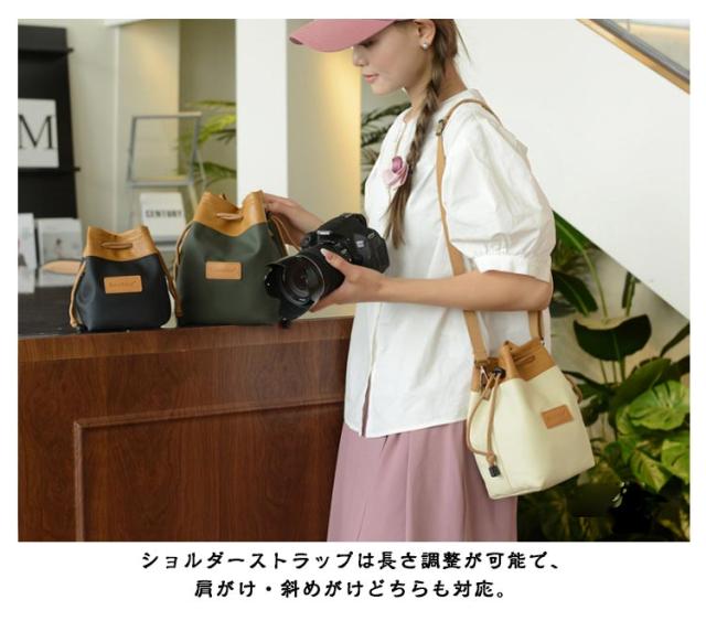 カメラポーチ 巾着袋 お洒落 レンズポーチ カメラバッグ カメラ収納袋 ショルダーバッグ 斜めがけ カメラショルダーバッグ 一眼レフ デジタルカメラ 軽量 コンパクト 巾着袋 アウトドア カメラ保護 撥水加工 旅行用 送料無料