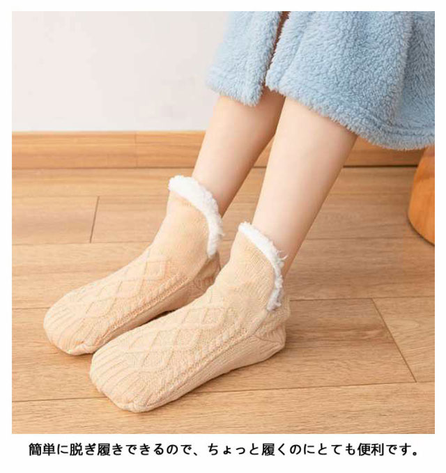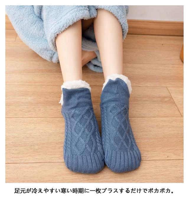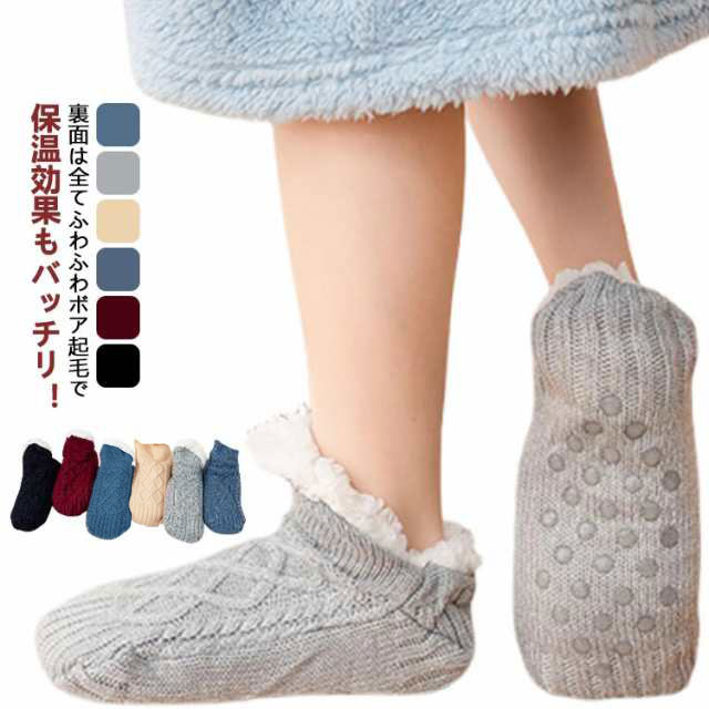 裏ボア 暖かい ルームソックス 靴下 レディース 全6色 ニットソックス ボア靴下 部屋着 ニットフットカバー 厚手 防寒 秋 冬 滑り止め付き 冷え取り くつ下 くつした おしゃれ メンズ 敬老の日 ギフト