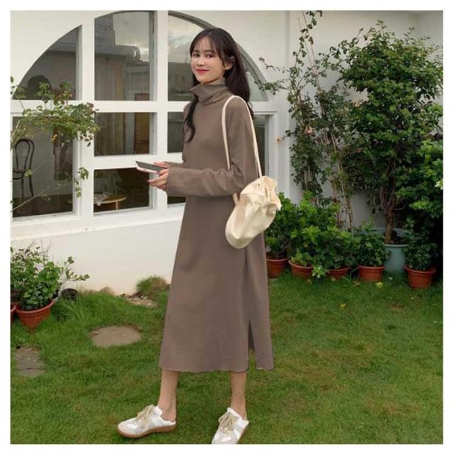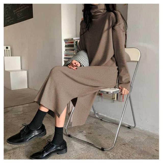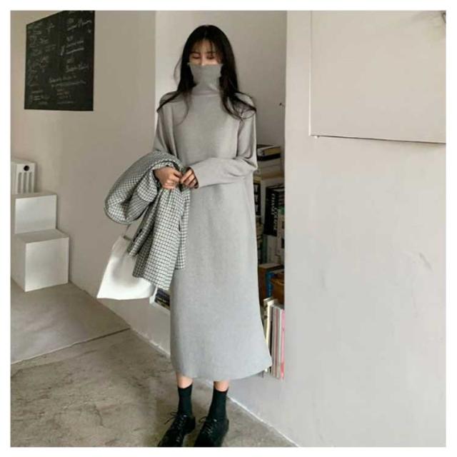 長袖 ハイネック ロングワンピース ニットワンピース ニットワンピ レディース ニットセーター タートルネック ニットワンピース 暖かい あったか きれいめ カジュアル オフィス 春 秋